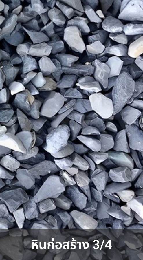 | หินก่อสร้าง 3/4 | หินขนาดใหญ่ประมาณ 3/4 นิ้ว (ประมาณ 2 ซม.) | แข็งแรง รองรับน้ำหนักได้ดี | ผสมคอนกรีต งานโครงสร้าง | เทเสา ฐานราก ถนน |