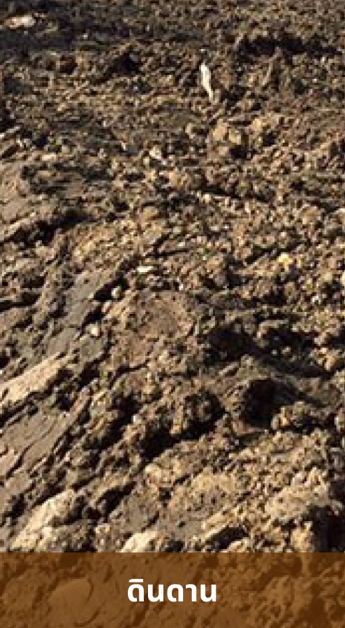 | ดินดาน | แข็ง, แน่น, อัดแน่นสูง | รองรับน้ำหนักสูง, ระบายน้ำต่ำ | ฐานรากอาคาร, ถนน | ปูฐานรากอาคาร, ทำถนน |