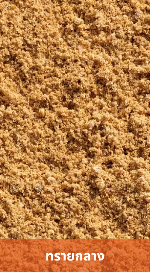 | ทรายกลาง | เม็ดปานกลาง | อัดแน่นพอสมควร, ระบายน้ำได้ | ถมปรับระดับ, ผสมคอนกรีตทั่วไป | ถมพื้น, ทำคอนกรีตทั่วไป |