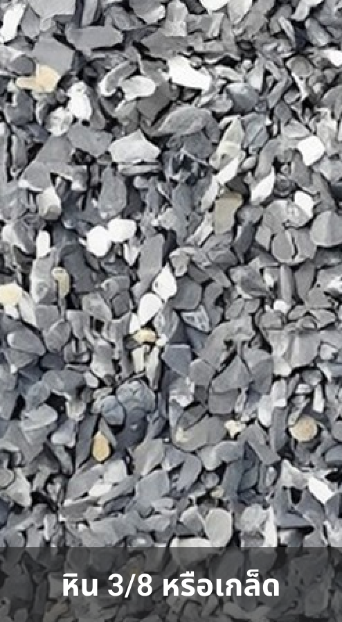 | หิน 3/8 หรือเกล็ด | ขนาดเล็กประมาณ 3–10 มม. | เนื้อแน่นผสมคอนกรีตได้ละเอียดี | เทพื้นคอนกรีต,งานตกแต่งพื้น | ผสมคอนกรีตบ้าน, ถนนทางเท้า |