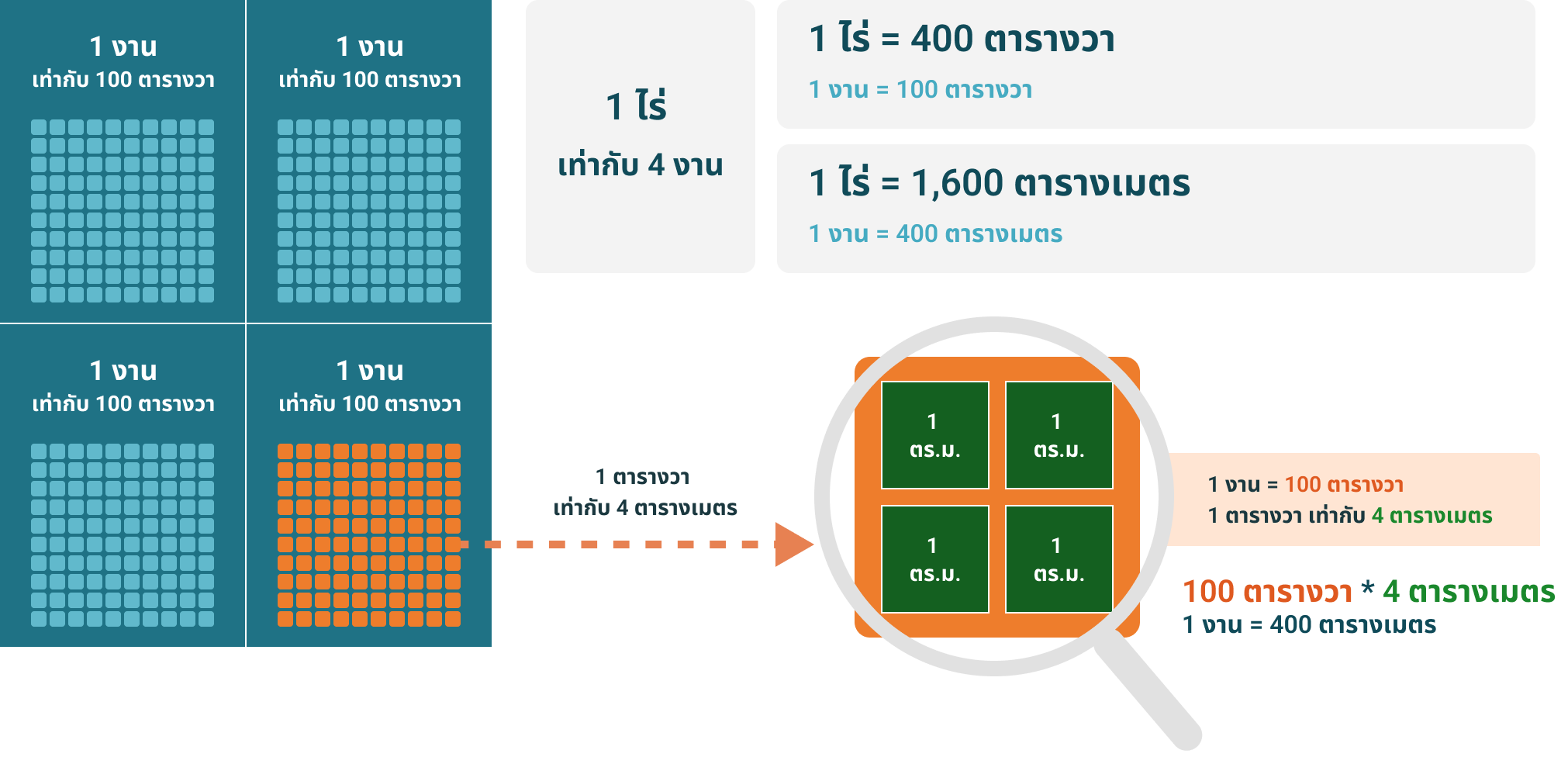 ▒ 1 ไร่ = 1,600 ตารางเมตร